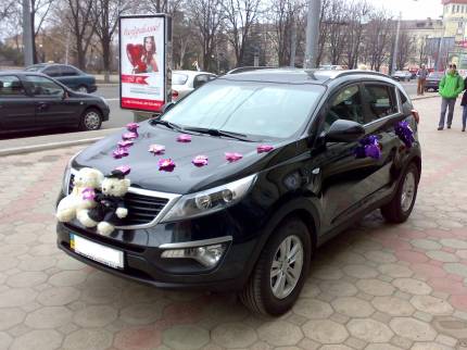 Обслуживание свадебных торжеств, праздников, корпоративов новым автомобилем KIA Sportage, кроссовер (джип), 2012г.в., цвет – чёрный (фото на фоне чёрного авто стильно), не тонированный. Оплата почасовая: 180 грн./час в черте города. Поездка за город - по договорённости. Предоплата 20% от общей стоимости поездки. Возможно украшение автомобиля. Тел. 0985726772, 0508009798.